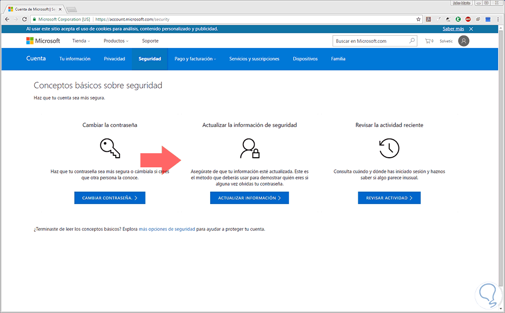 Una vez accedamos con nuestras credenciales nos dirigimos a la pestaña Seguridad. Allí será necesario que pulsemos en la ficha Actualizar información