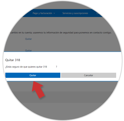 Será desplegado el siguiente mensaje. Pulsamos en Quitar para proceder con la acción.