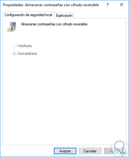 Con esta política se pueden descifrar contraseñas que han sido previamente cifradas por lo cual no es recomendable su habilitación ya que algún atacante puede aprovechar su vulnerabilidad para descifrar la contraseña y acceder al equipo y con ello a los recursos compartidos.