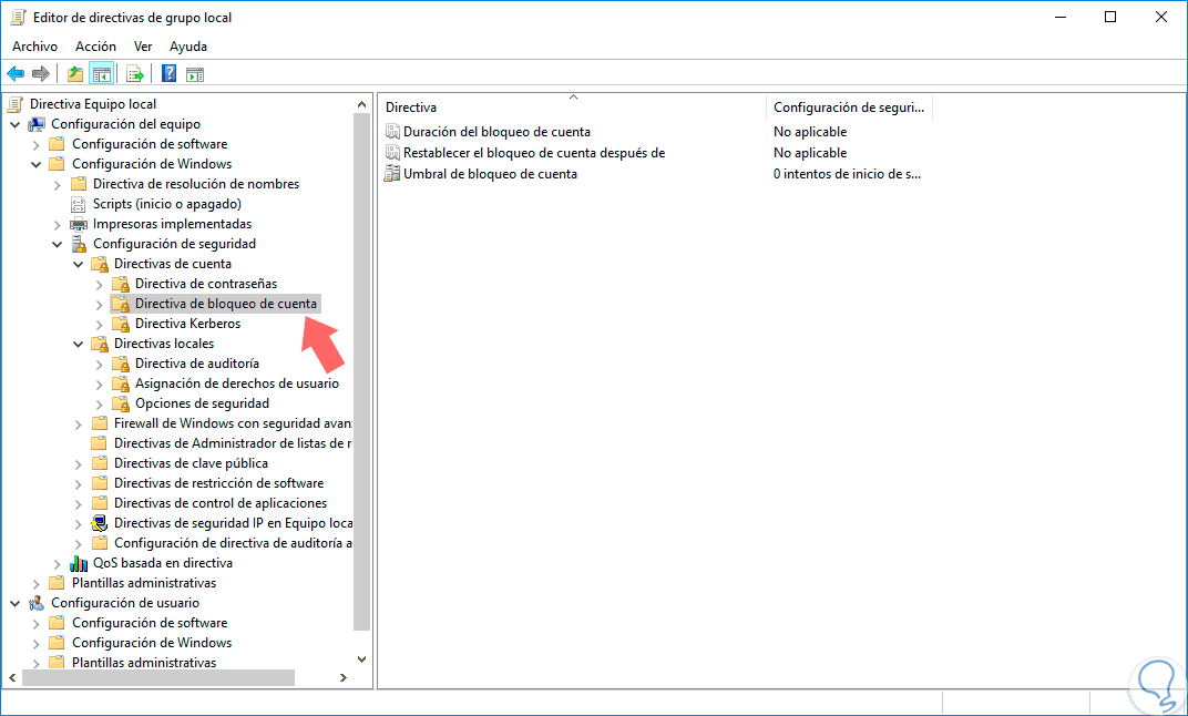 3. Configurar políticas de bloqueo de cuentas de usuario en Windows Server 2016