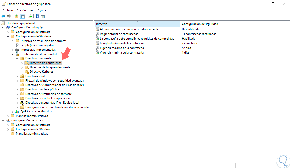Con esta política indicamos la serie de requisitos a ser aplicados durante la creación de la contraseña como: