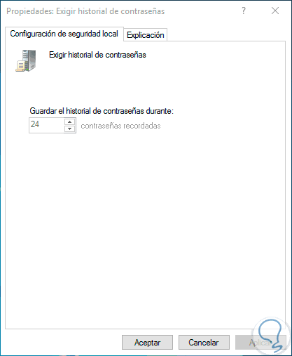 - Establecer "Exigir historial de contraseñas a 24" ya que esto nos ayudará a prevenir múltiples vulnerabilidades provocados por la reutilización de contraseñas.