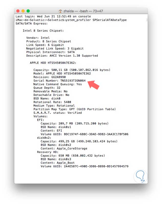 3. Saber el número de serie del disco duro terminal gráfico en macOS