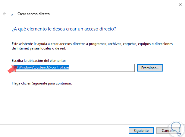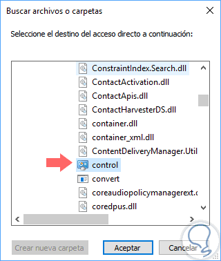 Allí pulsamos en el botón Examinar e iremos a la ruta C:\Windows\System32 donde ubicaremos el archivo llamado control.exe: