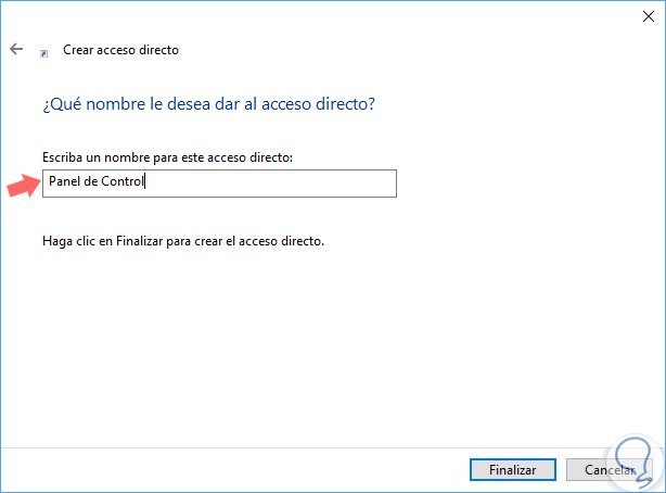Pulsamos en Siguiente y ahora asignaremos un nombre a dicho acceso directo. Pulsamos en Finalizar para salir del asistente.