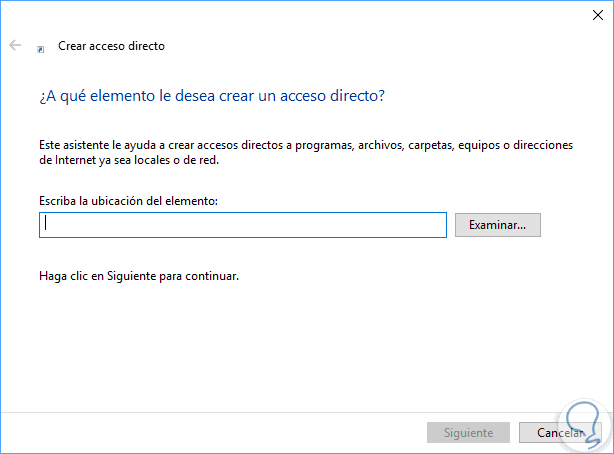 Esta será la apariencia en la creación del acceso directo:
