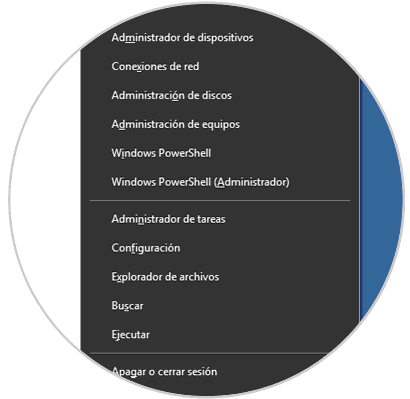 - Dando clic derecho sobre el menú Inicio