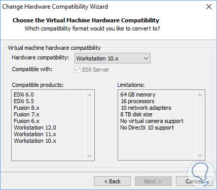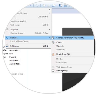 Para solucionar este problema y realizar la instalación de forma correcta debemos ir a la ruta VM/ Manage / Change Hardware Compatibility