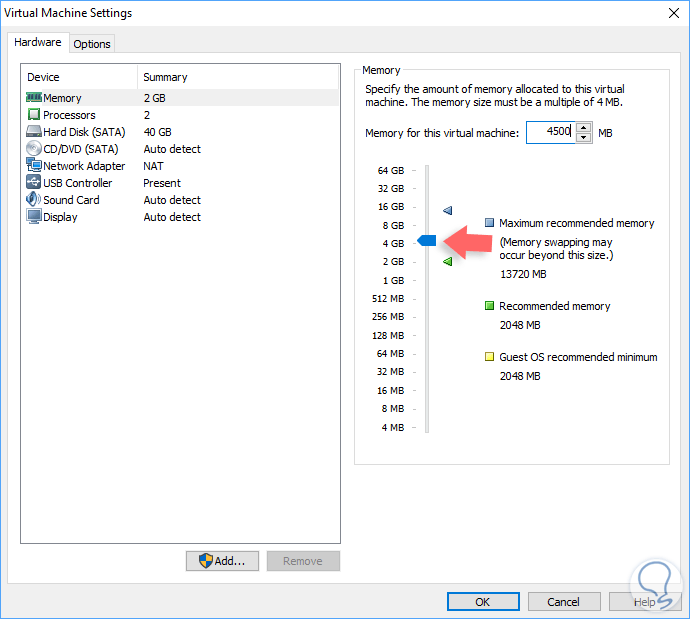 Allí pulsaremos en la línea Edit virtual machine settings y configuraremos los siguientes valores: