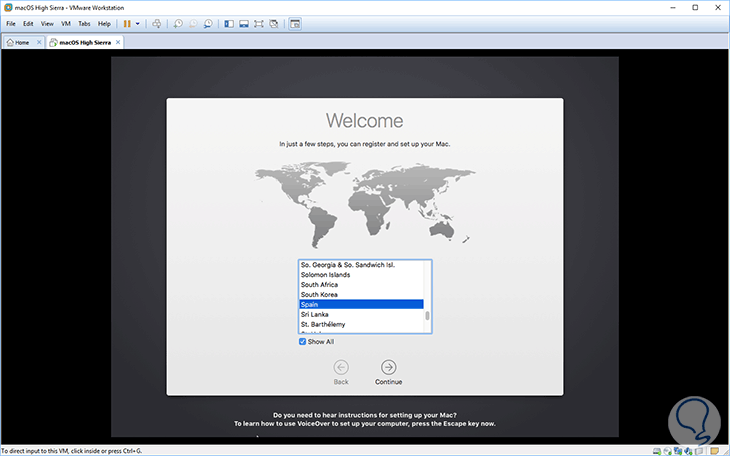Allí debemos seguir los pasos normales de la instalación del sistema operativo macOS High Sierra.