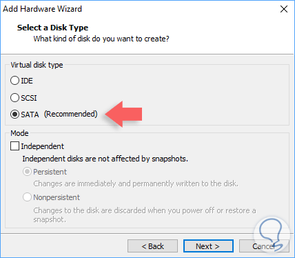 Pulsamos en Next y allí seleccionamos la casilla SATA: