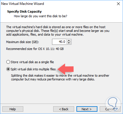 En la siguiente ventana asignaremos el almacenamiento del disco duro y el método de almacenamiento del disco: