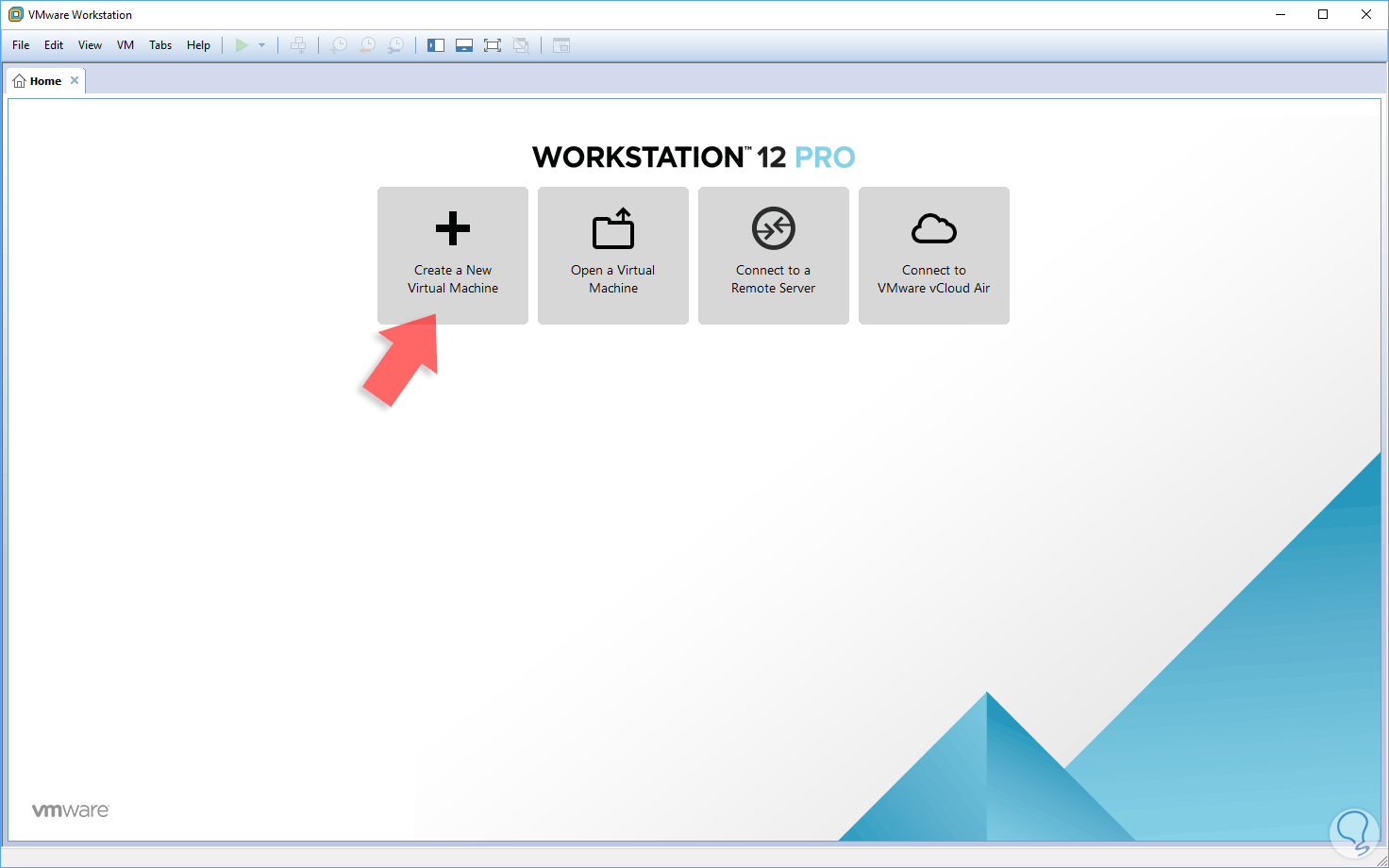- Pulsar en el icono Create a New Virtual Machine en la consola central de VMware