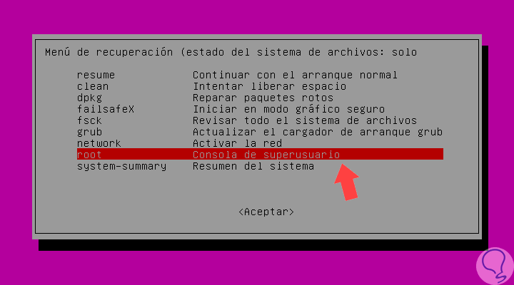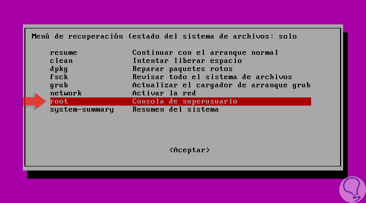 En la siguiente ventana pulsaremos Enter para acceder al modo de mantenimiento:
