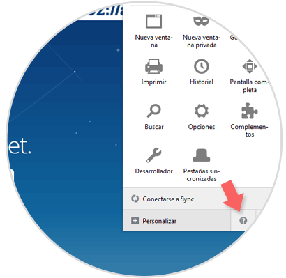 En el caso de Firefox debemos pulsar en el icono de Menú y posteriormente en el icono de interrogación ubicado en la parte inferior: