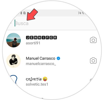 Si no has recibido mensajes directos y tienes esta lista vacía o quieres enviar un mensaje a una persona que no se encuentra en esta lista solo tienes que pulsar sobre el buscador. Se abrirá una pantalla donde aparecerán todos tus contactos. Con pulsar sobre el que quieras podrás iniciar la conversación.