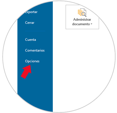 Para iniciar el proceso de deshabilitacion de la vista protegida abrimos un nuevo documento en blanco y vamos al menú Archivo donde seleccionaremos la línea Opciones.