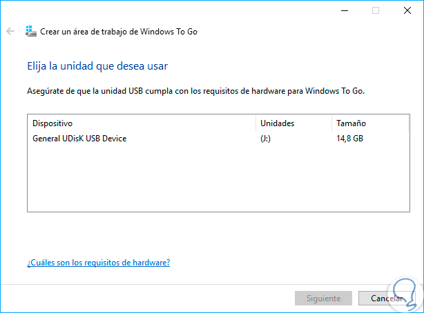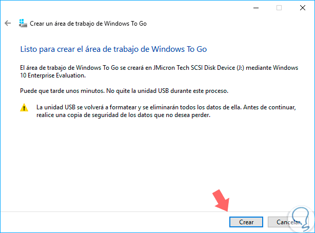 Finalmente estaremos listos para crear Windows To Go desde la herramienta propia del sistema operativo: