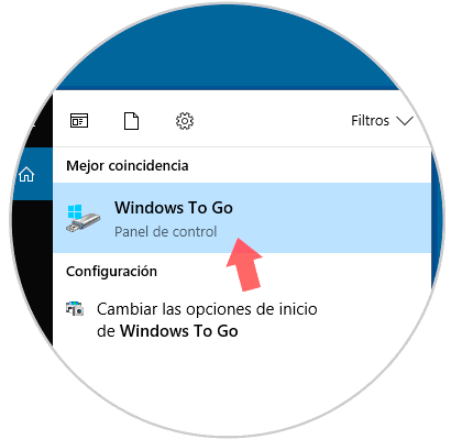 Para ello en el cuadro de búsqueda de Windows 10 ingresaremos Windows To Go y seleccionamos el resultado desplegado: