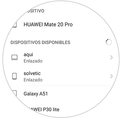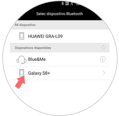 Verás que aparecen los dispositivos bluetooth disponibles para hacer el traspaso de aplicaciones. Selecciona aquel al que quieras mandar la app.