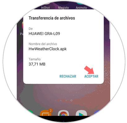 El otro dispositivo recibirá un aviso que debe aceptar para comenzar con la descarga.