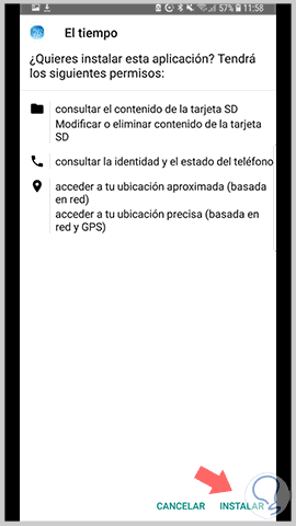 Una vez se ha recibido el APK en el dispositivo receptor, será tan fácil como pulsar en la aplicación en el botón de Instalar. Es probable que necesites tener habilitada las “Fuentes desconocidas” para poder hacerlo, ya que el AKP está enviado desde fuera de tu Play Store.