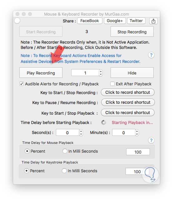 MurGaa nos ofrece la aplicación MurGaa Recorder mediante la cual podremos llevar acabo todo el proceso de grabación de las actividades llevadas a cabo con el mouse y el teclado en macOS Sierra.