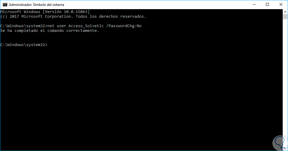 net user Acceso_Solvetic /PasswordChg:No