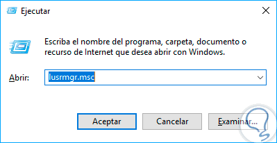 Para acceder a las políticas de cuentas usaremos la combinación de teclas siguientes y en la ventana desplegada ingresaremos la línea lusrmgr.msc (Local User Manager):