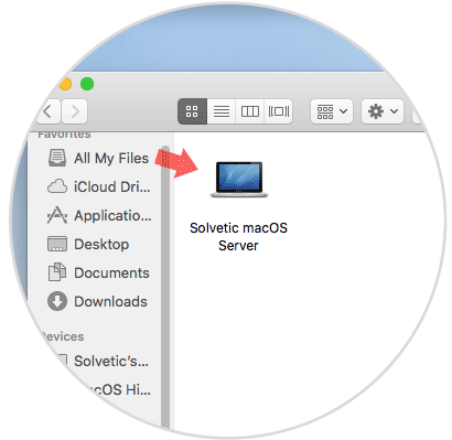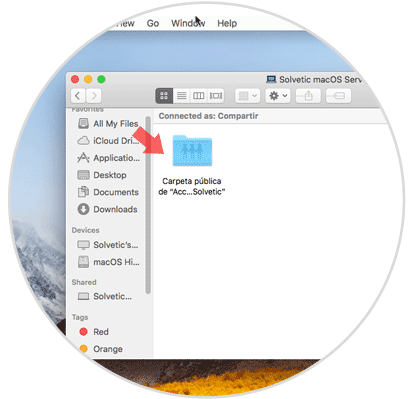 Para comprobar la conexión desde otro equipo macOS, en este caso usaremos una máquina virtual de macOS High Sierra, debemos ir a la opción de Red o Networking y allí seleccionar el dispositivo macOS donde se han establecido las carpetas a compartir. Daremos doble clic sobre el equipo