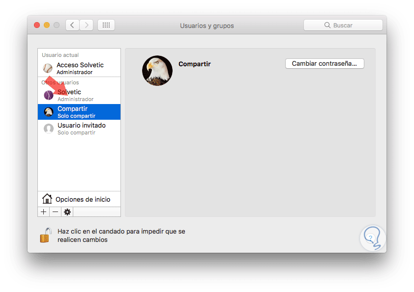 En la ventana desplegada será necesario que pulsemos en el icono de candado ubicado en la parte inferior para habilitar los cambios en los usuarios.