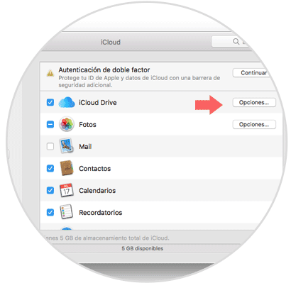 Una vez accedamos vamos a la sección iCloud Drive y pulsamos en el botón Opciones: