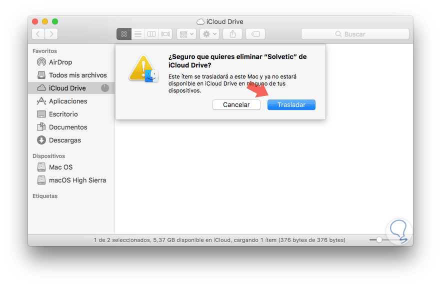 Allí veremos en detalle todos los elementos que han sido sincronizados. Para su recuperación abriremos una nueva ventana y nos dirigiremos a la carpeta Documentos o la que consideremos útil y arrastramos el archivo de iCloud Drive a dicha carpeta y veremos lo siguiente. Pulsamos en el botón Trasladar para completar el proceso.