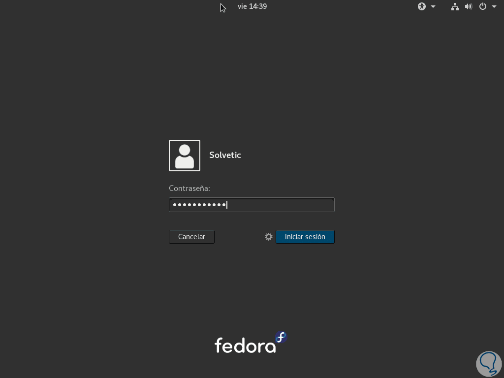 Una vez finalice el proceso de reinicio será necesario ingresar la contraseña del usuario creado: