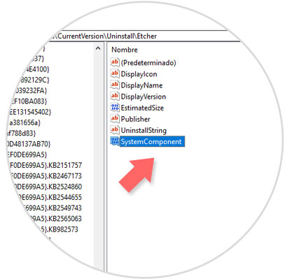 Ahora vamos a la ruta en el editor de registros y seleccionaremos el programa a ocultar, en este caso será Etcher: