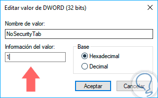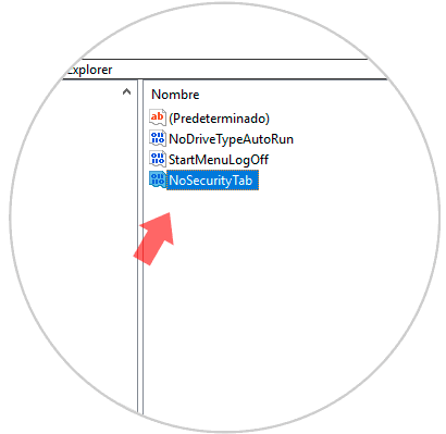 Este nuevo valor será llamado "NoSecurityTab":