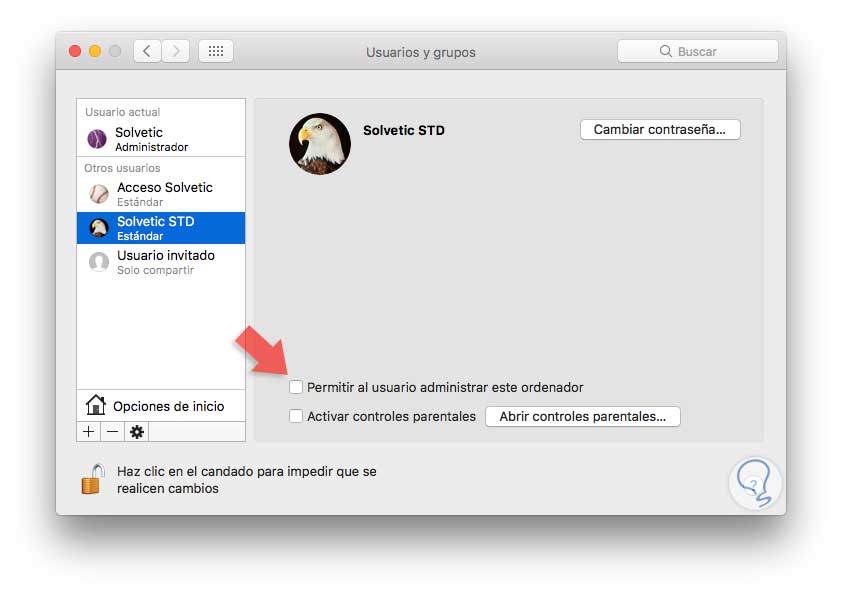 Otra de las opciones con las que contamos es promover una cuenta de usuario estándar a administrador y es un proceso sencillo.