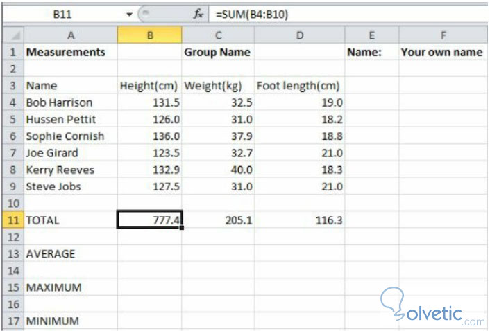 - Hacer click sobre el campo B11.