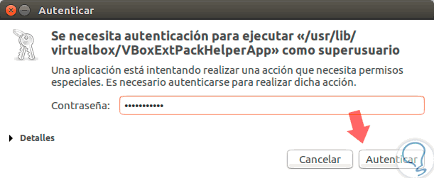 Pulsamos en Acepto y será necesario ingresar la contraseña de administrador: