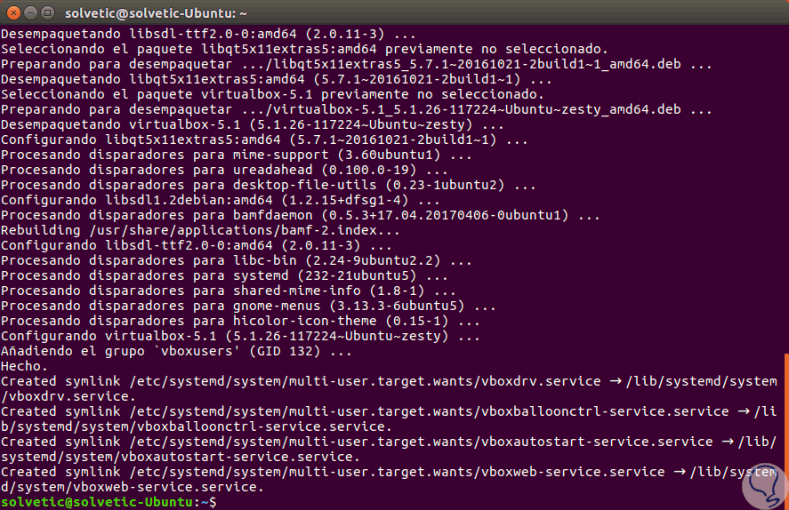 sudo apt-get purge virtualbox-5.1 && sudo apt-get autoremoveCon estos pasos ya tendríamos instalada VirtualBox en nuestro Ubuntu 17.04