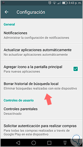 2. Borrar historial del Google Play en Android