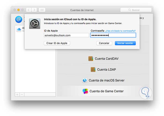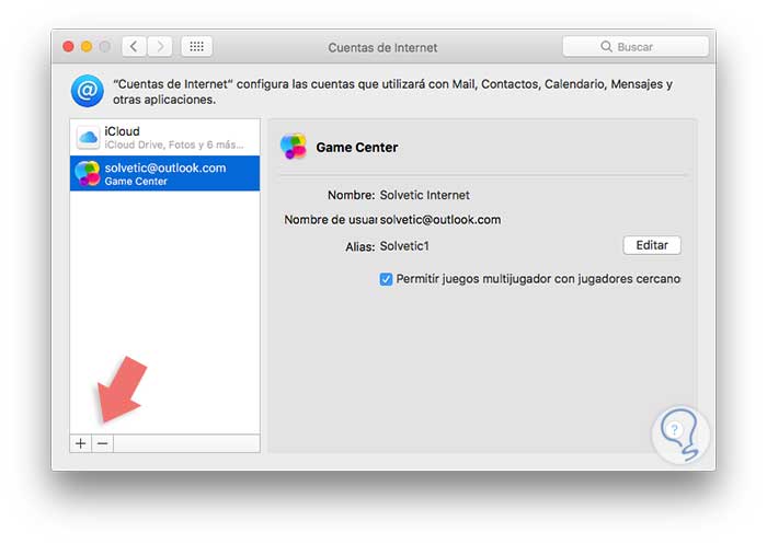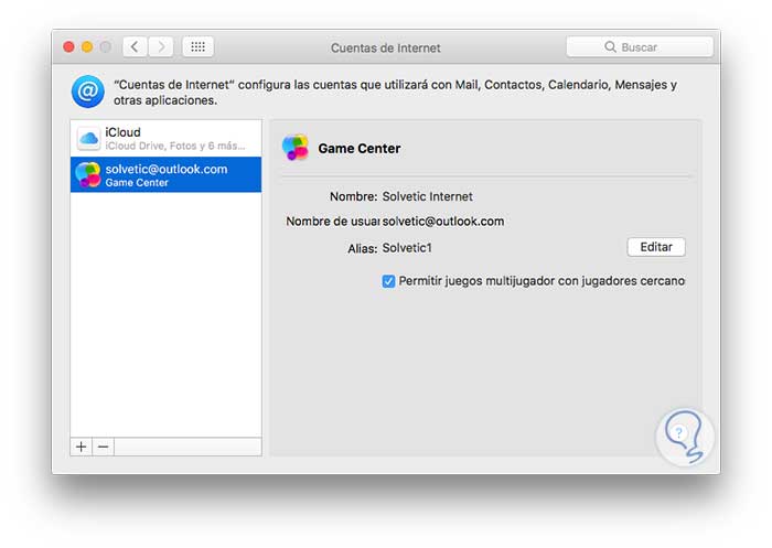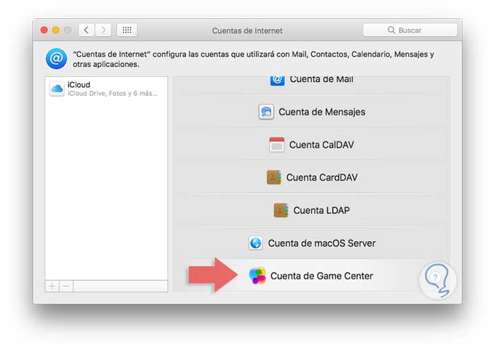En el momento que no deseemos usar más el Game Center en macOS Sierra podemos deshabilitarlo accediendo a Preferencias del sistema / Cuentas de Internet y veremos lo siguiente: