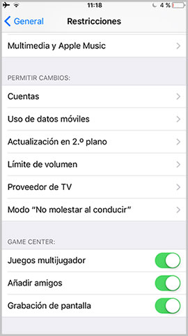 En caso de editar algún tipo de restricción en Game Center para evitar el uso inadecuado de juegos y para ello vamos a