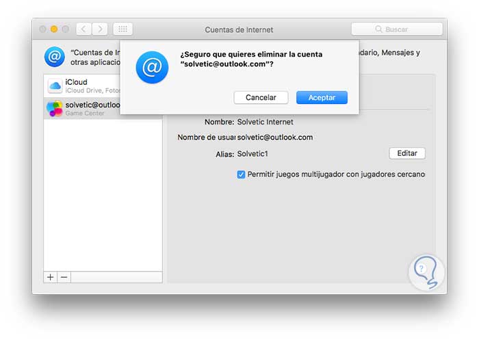 Allí pulsamos en Aceptar para aplicar los cambios y remover la cuenta de Game Center en macOS Sierra.