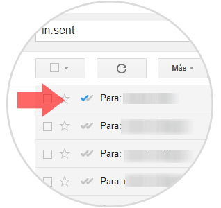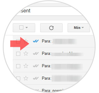 En tu bandeja de enviados cuando el correo sea enviado aparecerá coloreado un check en azul, y dos cuando esa persona haya abierto el correo.
