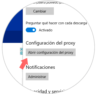 Posteriormente pulsaremos en el botón Abrir configuración del proxy ubicada en el campo Configuración del proxy: