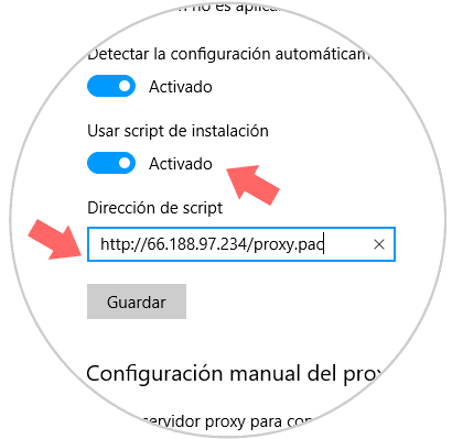 También tenemos otra opción para usar un servidor proxy en Windows 10 y es a través de paquetes *.PAC en el cual se incluye la dirección del servidor proxy a usar junto a sus excepciones.