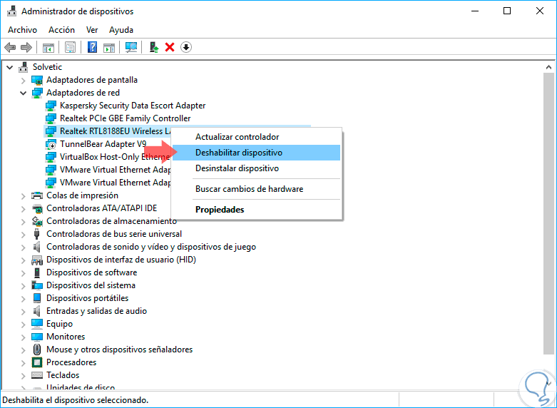 1. Solucionar error WiFi desde el Administrador de dispositivos Windows 10