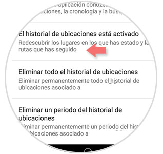 Nos desplazamos hacia abajo, y veremos un apartado en el que pone “El historial de ubicaciones está activado”. Debemos hacer clic sobre el. En el caso de que queramos que deje de registrar estos datos, debemos desactivar esta opción.