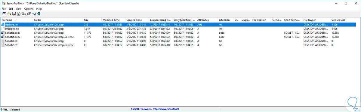 Una de las aplicaciones más completas para realizar este tipo de búsqueda y eliminación es Search My Files ya que nos permite definir múltiples filtros de búsqueda, por ejemplo, buscar todos los archivos creados en los últimos 20 minutos con un tamaño entre 400 y 800 bytes.